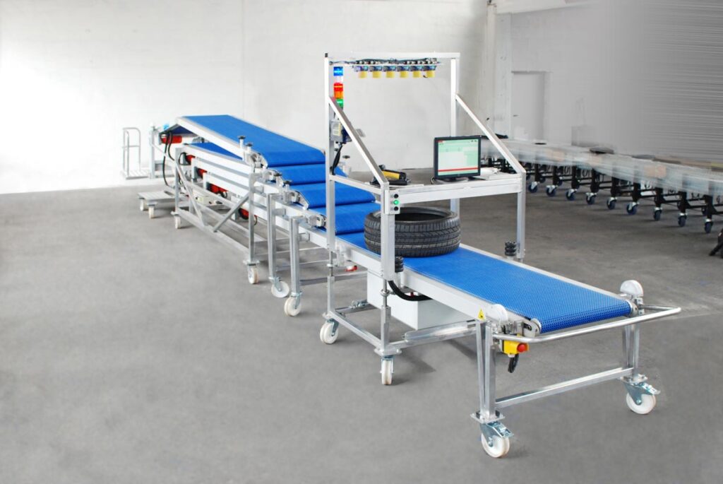 Les pneus entrants et sortants sont ainsi scannés et leurs codes-barres sont comparés avec les codes-barres des pneus à décharger effectivement, conformément à l’avis de livraison. En cas de code-barres inexact, la bande s’arrête et le code-barres est vérifié par un collaborateur.
